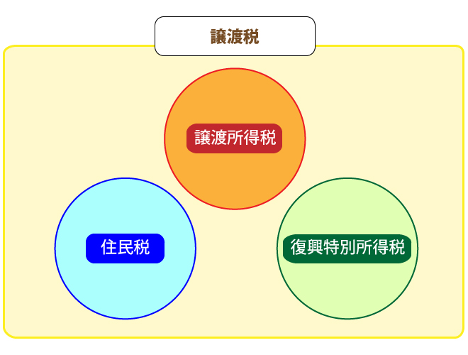 一般的に言われる譲渡税とは、譲渡所得税住民税復興特別所得税の3つをあわせた合計のことをさしています。それぞれ課税対象と税率が違うので、譲渡税を計算するときは分けて計算します。