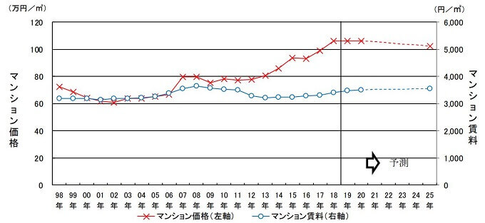 マンションの水準価格は現在が最も高く、2020年以降は微減していくと予想されます。