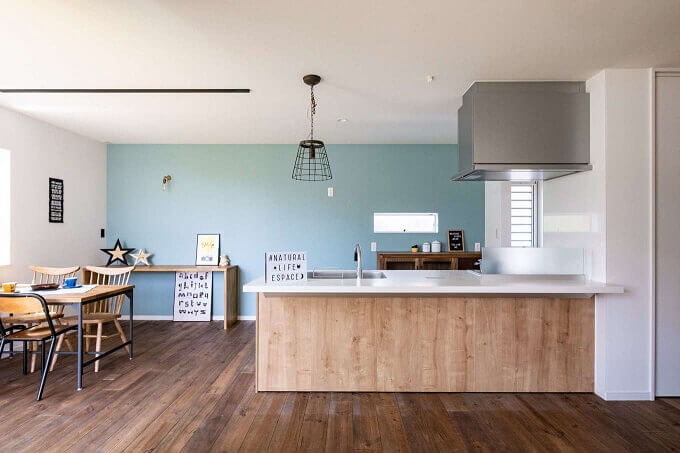 家族が長時間過ごすLDKは、明るく快適な空間にしたいですね。最近では木目調や、タイル風、色のついたクロス(カラークロス)をLDKの一部に取り入れる方が増えています。以下でLDKのどの部分にアクセントクロスを入れているのか見てみましょう。
