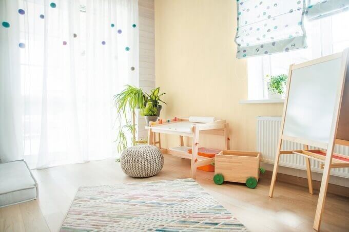 なお、シンプルに無地のカラークロスを入れ、カーテンや絨毯、家具にポップな柄やカラーがついたものを取り入れる方も多いです。カラークロスが入っているだけでも十分に可愛らしさが出ますね。