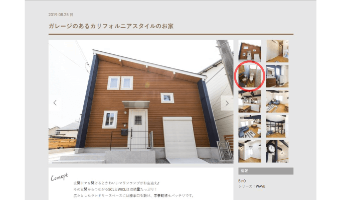 試しに画像をクリックしてみると、工務店さんが施工事例を載せているページに飛びました。