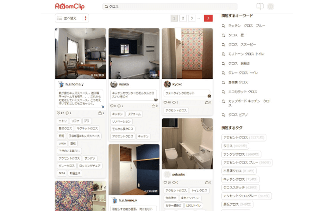 また、ルームクリップには入居前だけでなく、入居後、家具や家電が配置されてからのお部屋写真も多く見受けられます。クロス選びでも大変参考になるでしょう。