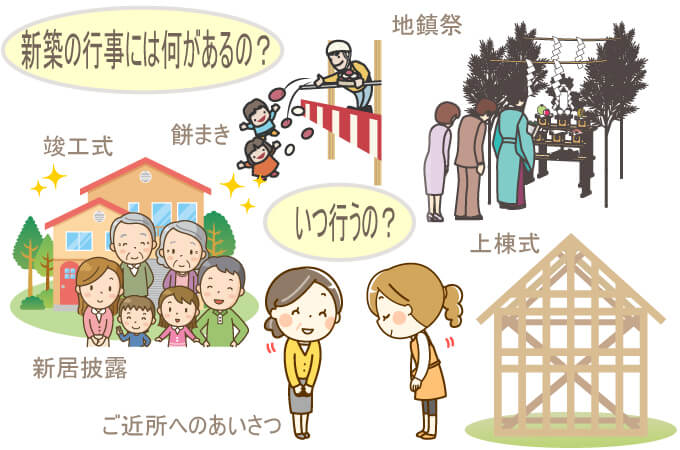 しかし多くの方が新築購入の経験は初めてであることから、「行事の存在は何となく知っているが詳しくは分からない」「行事の存在すら知らなかった」という方が多いのではないでしょうか。