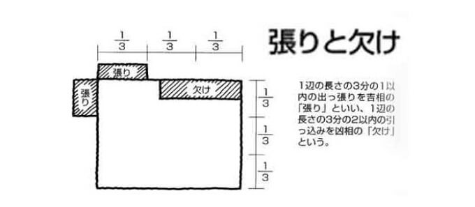 家を四角形として見た場合、へこんでいる部分が「欠け」、出っ張っている部分が「張り」だと考えてください。