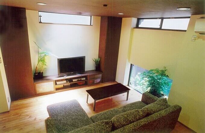 掃き出し窓より小さい腰高窓や採光窓を複数使用する事で、気密性を担保しつつ効率的に採光、換気ができます。また、窓の位置が高いため防犯面やプライバシー面を考えると安心です。