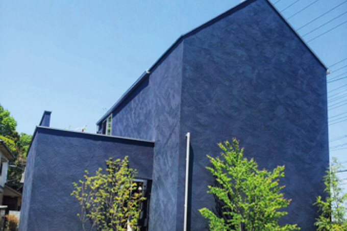 一風変わった、窓のない黒い外壁が特徴的な建物です。外観からは分かりませんが、実はウッドデッキの中庭があります。